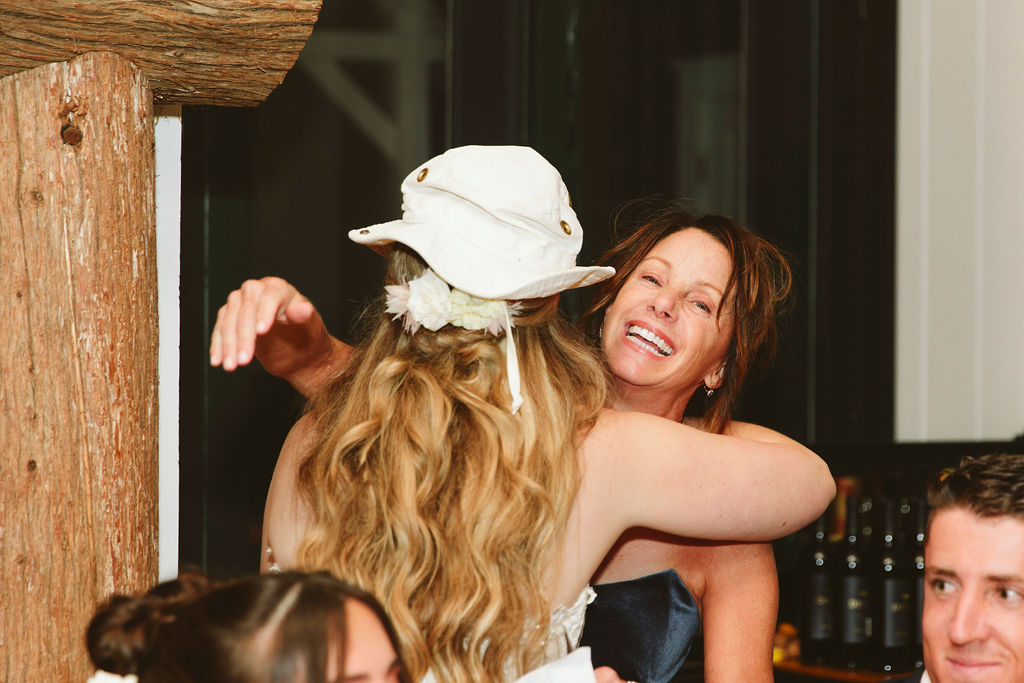 Guests later gathered on the golf course for the ceremony, where the views stretched all the way to the High Peaks. Amid the beauty of that backdrop, there was also a deeply felt tenderness. Lilly’s father had recently passed, and his Tilley hat was placed with care as a remembrance. The combination of sweeping mountain scenery and that intimate tribute made the moment especially meaningful as Lilly and Will exchanged vows.