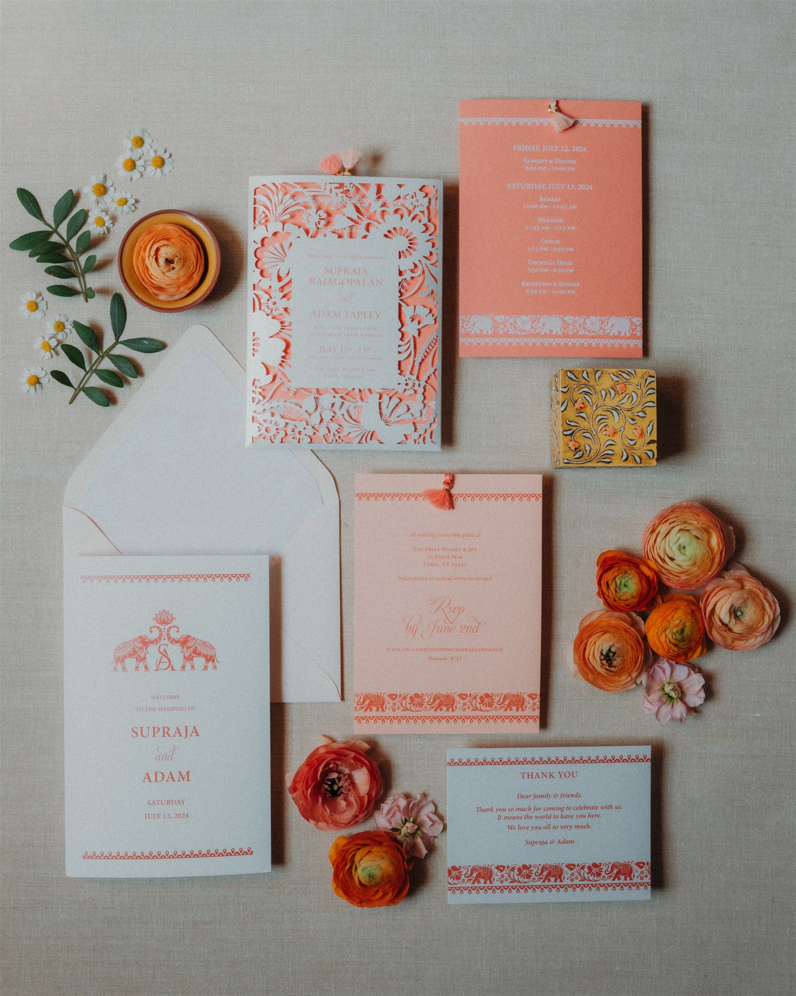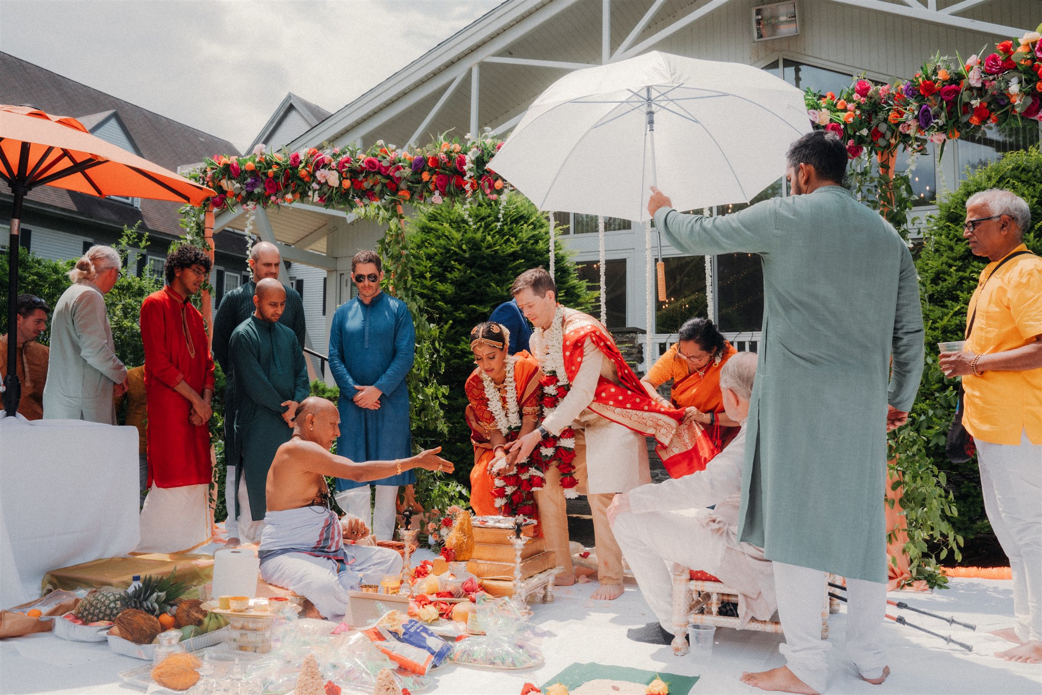 This was not just a wedding day, but a three-day celebration, layered with culture, family, laughter, ritual, and so much love. Set on a hot summer weekend in Vermont, the Essex Spa provided the perfect backdrop for a joyful fusion wedding that honored tradition while feeling completely personal.