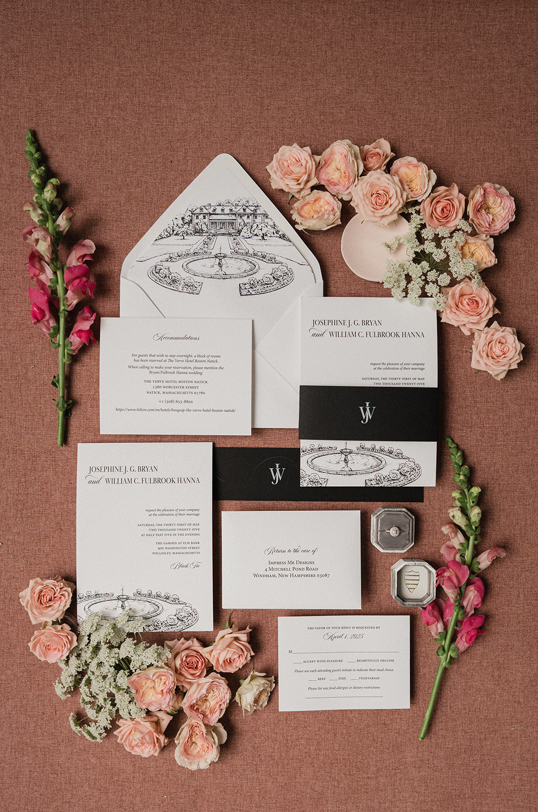 Josephine and Will came to us knowing they wanted to get married somewhere in Massachusetts, but they weren’t quite sure where. After an extensive venue search and many thoughtful conversations, we landed on Elm Bank. It was the perfect fit: elegant, flexible, and full of natural beauty in every season.