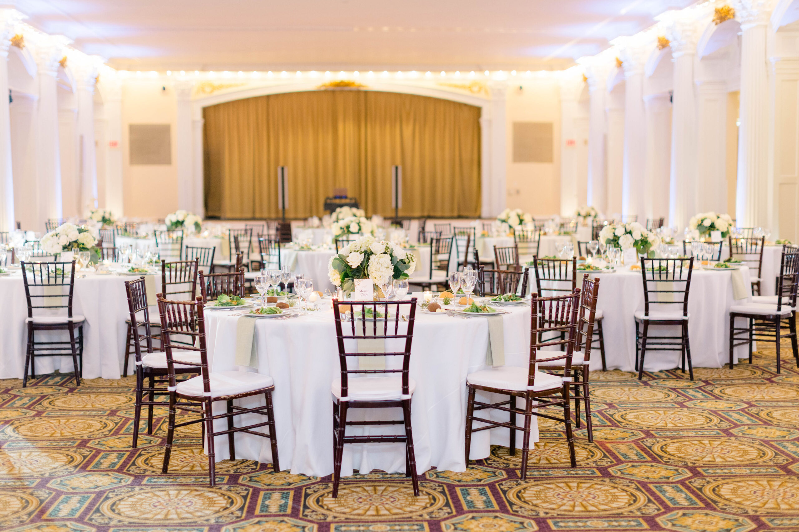 Following the ceremony, guests moved inside to the Presidential Ballroom for the reception. With its soaring ceilings, elegant details, and historic charm, the ballroom was a perfect contrast to the outdoor ceremony while still reflecting the grandeur of the hotel.